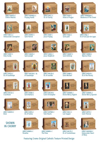 URN1144HF-CHoly FamilyURN1144CX2-CCrucifixionURN1144DOV-CDoveURN1144GU-COL of GuadalupeURN1144ATO-CChild of AtochaURN1144IC2-CImmaculate ConceptionURN1144MHL-CParadiseURN1144FA-COL of FatimaURN1144BA-CSaint BarbaraURN1144PAT-CSaint PatrickURN1144JO3-CSaint JosephURN1144GU8-C OLof GuadalupeURN1144HND2-CPraying HandsURN1144MHL-CThe PietaURN1144JP-CJesus PrayingURN1144CC-COL of CharityURN1144LOU-COL of LourdesURN1144TWH-CTwin HeartsURN1144JS2-CJesus ShepherdURN1144CHR-CSaint ChristopherURN1144JU-CSaint JudeURN1144LS-CLast SupperURN1144MI-CSaint MichaelURN1144IP-CInfant of PragueURN1144ANT-CSaint AnthonyURN1144CZE-COL of CzestochowaURN1144DME-CDivine Mercy EnglishURN1144TH-CSaint ThereseURN1144RM-CMystical RoseURN1144OLR-COL of the RosaryURN1144IHM4-CImmaculate Heartof MaryURN1144DMS-CDivine Mercy SpanishURN1144MDN4-CMadonna of The StreetURN1144JL-COL of San Juan de LagosFeaturing Cromo Original Catholic Texture Printed DesignSHOWNIN CHERRY